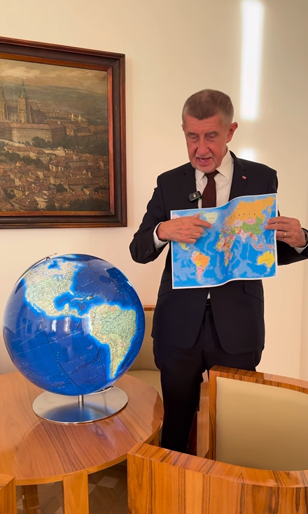 Andrej Babiš vysvětlil, že si pořídil globus za 15 tisíc korun, aby měl reálný přehled o skutečných proporcích světa. Podle něj totiž běžné mapy zkreslují velikost jednotlivých území.