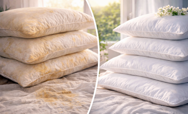 Mnoho lidí v takové chvíli polštáře jednoduše vyhodí a koupí nové. Ve skutečnosti však existují jednoduché a účinné způsoby, jak polštáře znovu vyčistit, vybílit a vrátit jim příjemnou vůni. Stačí několik běžných surovin, které má většina lidí doma.