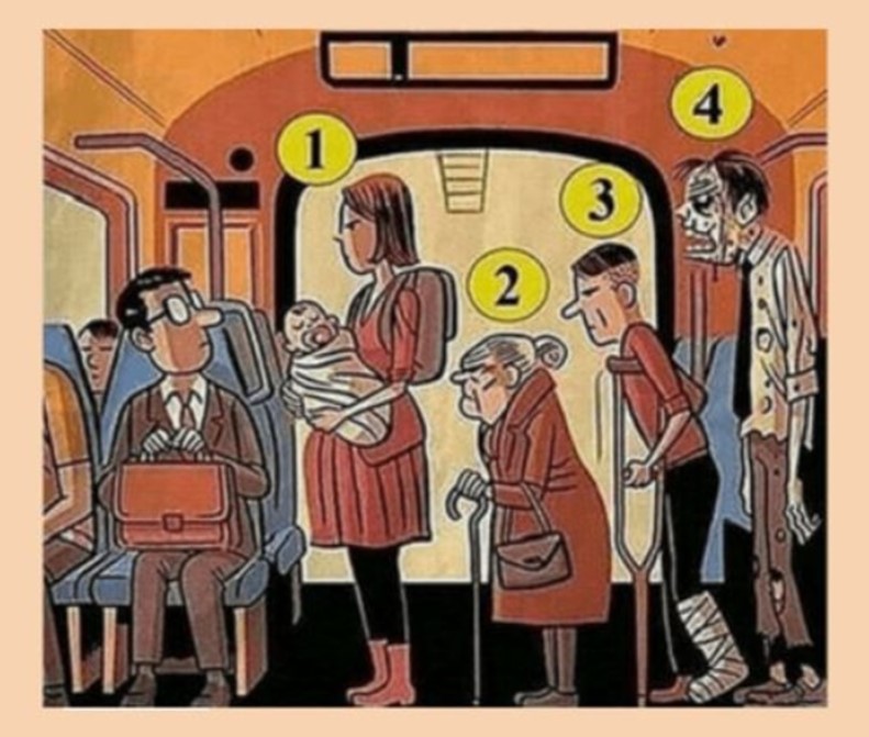 Od malička nás učili, že starší lidé mají přednost a že je zdvořilé uvolnit jim místo. Vybrali jste si starou paní s hůlkou? To svědčí o vaší zdvořilosti, smyslu pro etiku, upřímnosti a obrovském klidu. A nezáleží na tom, zda jste žena nebo muž. Gratulujeme, respektujete ostatní a nejste lhostejní ke svému okolí.