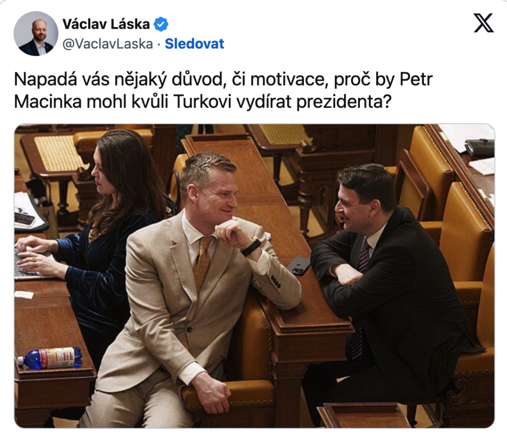 Senátor Václav Láska se na síti X ptal, jaký důvod vlastně Macinku vedl k tak tvrdému tlaku kvůli Turkovi.