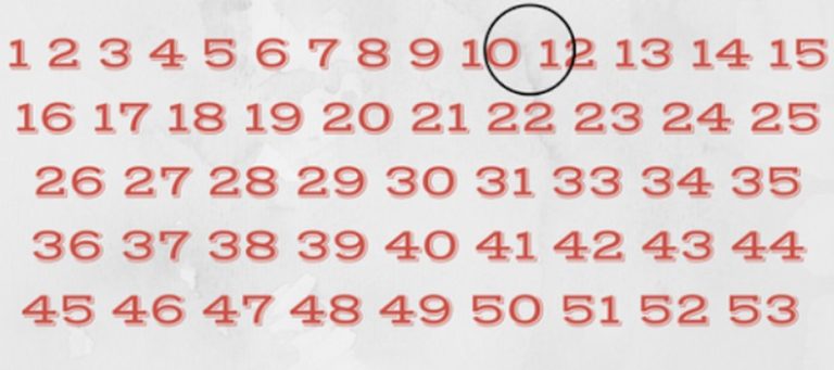 Na této ilustraci je patrné, že v jinak pravidelné řadě čísel chybí prvek, který by tam logicky měl být. Většina lidí si nejprve všimne, že se neobjevuje číslo 11. To je také první, nejviditelnější „mezera“, kterou lze v posloupnosti odhalit. Jenže tady záludnost testu nekončí.