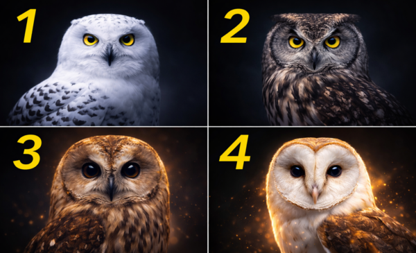 Stačí si vybrat jednu z těchto čtyř sov na obrázku. Netrávte analýzou příliš času – nechte promluvit svou intuici. Ta sova, která vás „osloví“ jako první, nese klíč k vaší pravé sociální masce.