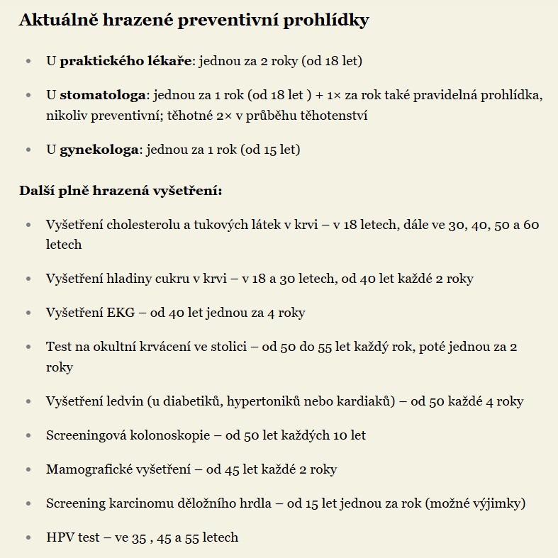 Ministerstvo zároveň zdůrazňuje, že finální podoba vyhlášky zatím není schválena, nicméně očekává se, že přinese významnou proměnu přístupu k prevenci. Z preventivní prohlídky by se měl stát klíčový nástroj, který dokáže včas upozornit na rizika rakoviny, řídnutí kostí či rozvoje demence – tedy nemocí, které často propukají nenápadně a plně se projeví až ve chvíli, kdy je léčba složitá a nákladná.