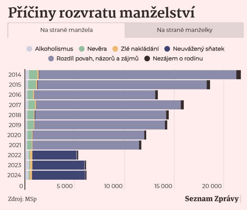 Statistiky Ministerstva spravedlnosti ukazují, že mezi nejčastější důvody rozvodu patří: