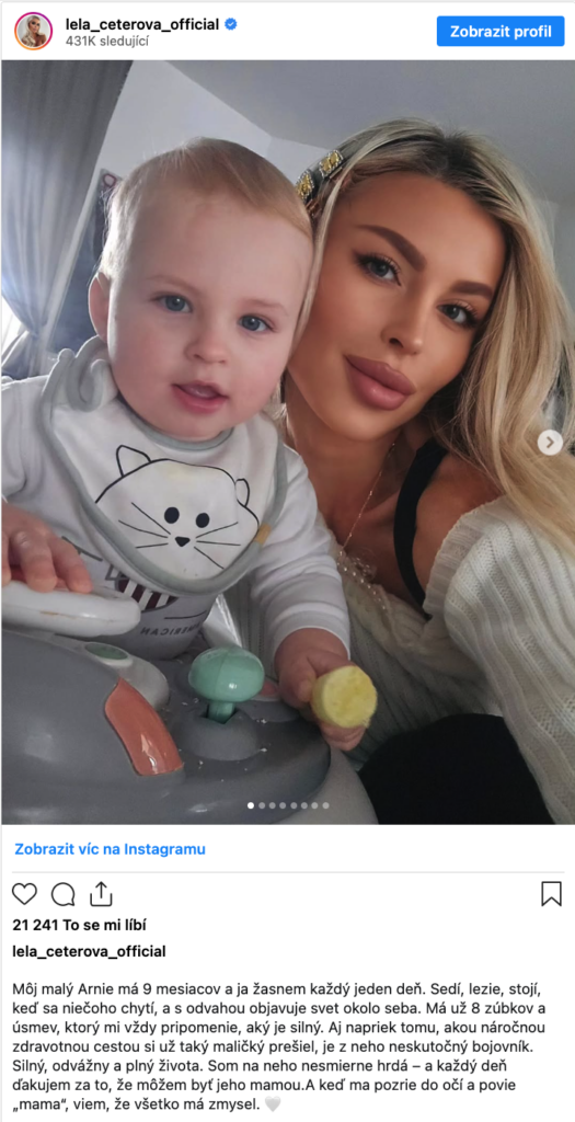 Přestože je Arnie ještě miminko, jeho životní cesta nebyla jednoduchá. Lela se svěřila, že už od narození musel čelit náročným zdravotním komplikacím, které nebyly lehké ani pro něj, ani pro ni jako maminku.