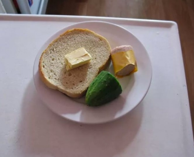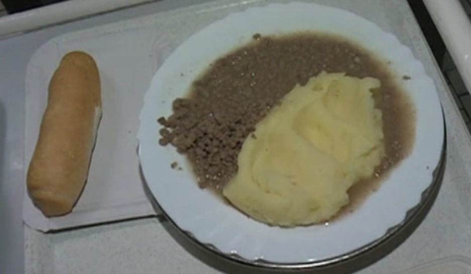 Neznámé ženě bylo servírováno něco, co mělo připomínat hamburger, ale bez křupavé housky, šťavnatého masa a dalších přísad.