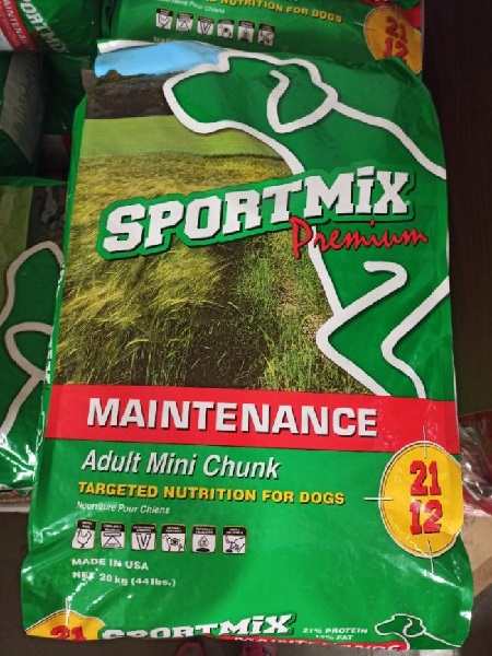 Čtvrtým typem, na který úřady upozorňují, je Sportmix Maintenance á 20 kg. Toto krmivo je prezentováno jako každodenní vyvážená strava pro dospělé psy. I zde však podle zjištění amerických úřadů mohlo dojít k použití kontaminované kukuřice.