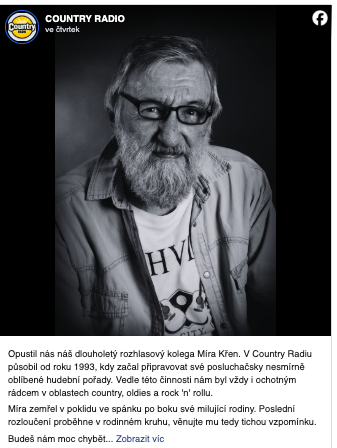 Míra Křen patřil k rozhlasovým osobnostem, které si nebudovaly popularitu skandály ani okázalým vystupováním. Jeho síla byla jinde. V profesionalitě, hudebním přehledu a přirozenosti, s jakou dokázal mluvit k lidem. Přesně tak na něj dnes vzpomínají i média, která jeho odchod připomínají jako ztrátu jednoho z dlouholetých pilířů Country Radia.