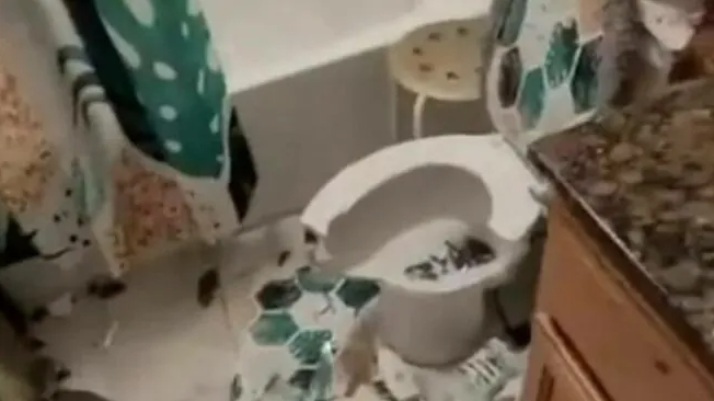 Na videu je vidět převrácený nábytek a domácí spotřebiče, poškozené vybavení i zničené povrchy. V jedné ze stěn zůstala výrazná díra, část kuchyňské pracovní desky je rozbitá, zrcadla roztříštěná na kusy a televize i okna zdemolovaná. Stůl, který bývá symbolem rodinného zázemí, je rovněž rozbitý. Celý prostor působí, jako by ho někdo systematicky ničil s jediným cílem – zanechat za sebou totální spoušť.