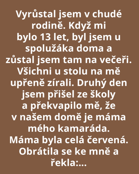 Vyrůstal jsem v chudobě. Jako dítě jsem zažil spoustu těžkých chvil, ale jedna z nich se mi vryla do paměti tím, jak nečekaně skončila úplně jinak, než jsem si myslel. Bylo mi třináct let, když jsem byl jednou pozván k večeři ke spolužačce ze školy. Pro mě to byla velká věc – nikdy jsem nebyl u někoho doma jen tak. A už vůbec ne u stolu, kde se podávalo něco tak krásného, jako ten večer.